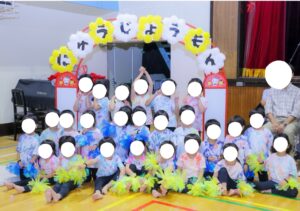 今年の幼児組は、自分たちで「タイダイ染め」をしたTシャツを着用し、全員で気持ちを揃え、運動会に臨みました!このクラスで行う運動会は今年で最後。最高に楽しい思い出をみんなで作ることができました!