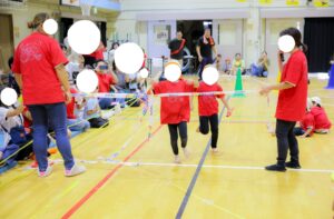 玉を多く入れたのは保護者チームでしたが、司会者のさじ加減で、子ども達チームが勝ちました(笑)