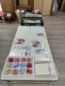 シールやビーズなど、たくさんの素材があり、子ども達も「何ができるかな!」と目を輝かしていました!
