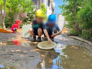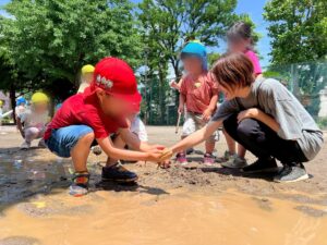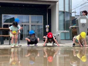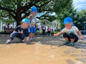 水たまりを触る子どもたちの背中もじわじわと暑くなり夏の訪れを感じました。