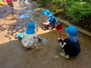 夏になったら子どもたちの大好きな水にたくさん触れて、思い切り泥、水遊びを楽しみたいですね。