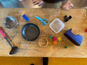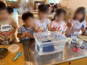 そんな子どもたちと水+身近な物で「浮かぶ?沈む?」の実験をしてみました。