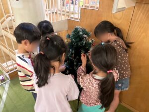 エントランスにはたいよう組が飾り付けをしてくれたツリー。それを眺めながら、みんなでクリスマスを楽しみにしてきました。