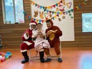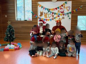 最後は、サンタさんとトナカイさんと一緒に記念撮影をして、笑顔がいっぱいの楽しいクリスマス会になりました♪