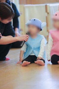 最後に『かわいいかくれんぼ』の歌では、マイクを向けられると大きな声で歌ったり恥ずかしくて横を向いたりと様々な姿がありました。普段とは違う雰囲気の中でしたがそれぞれが成長した姿を見せてくれました。